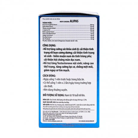 Thực phẩm bảo vệ sức khỏe hỗ trợ tăng cường sức khỏe sinh lý nam giới Ecogreen Alipas (Hộp 30 Viên)